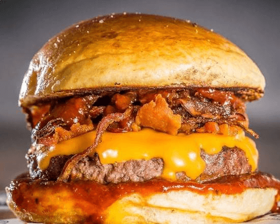 Pão, Hambúrguer, ovos, presunto, queijo e salada.